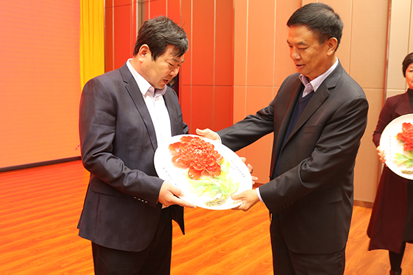 会议期间,河南南府店村党委书记张龙安向长江村党委副书记、村委会主任范兴龙、安徽猴坑村党总支村书记、村委会主任方继凡赠送了年会纪念品“花开富贵、友谊长存”。