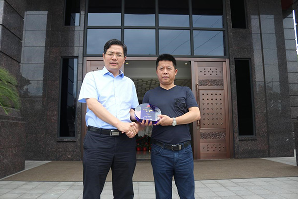 6月27日上午,江阴市委副书记、组织部部长崔荣国来到我村李良宝事迹展览馆,为村党委书记、集团公司董事长李洪耀授予李良宝老书记获得的江苏省委组织部颁发的“二十年老支书”纪念奖牌。